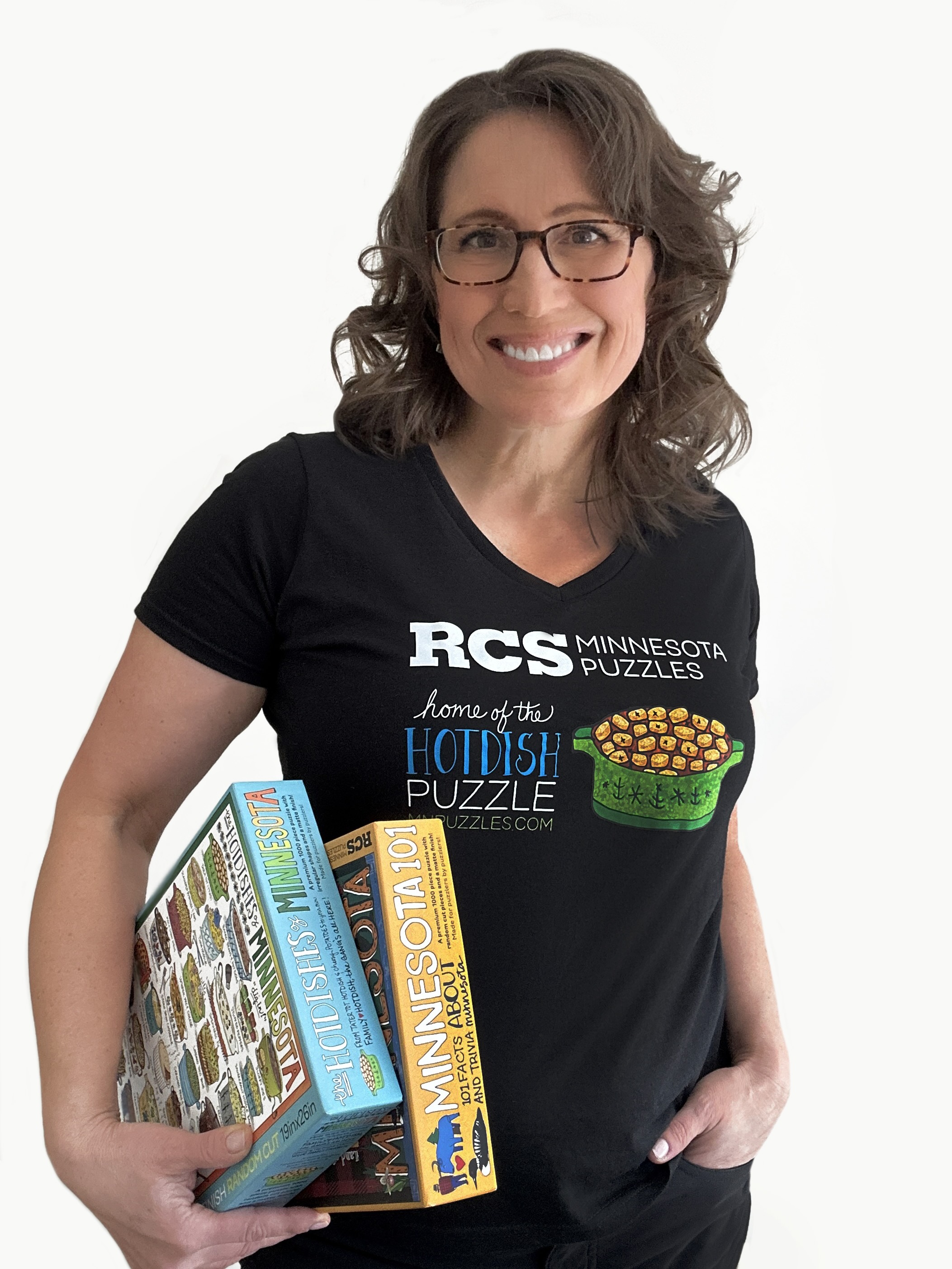 Melanie Rice is a graphic designer based in the northwoods of Minnesota with over 30 years of creative experience. Her greatest passion today is designing jigsaw puzzles. These aren’t your average puzzles—they’re full of Minnesota charm, with whimsical, hand-drawn illustrations inspired by the places, food, humor, and everyday details that make this state feel like home. Melanie designs every puzzle from her home office in Walker, Minnesota. Nothing is AI-generated, everything is drawn by hand, and the puzzles are printed in the USA.