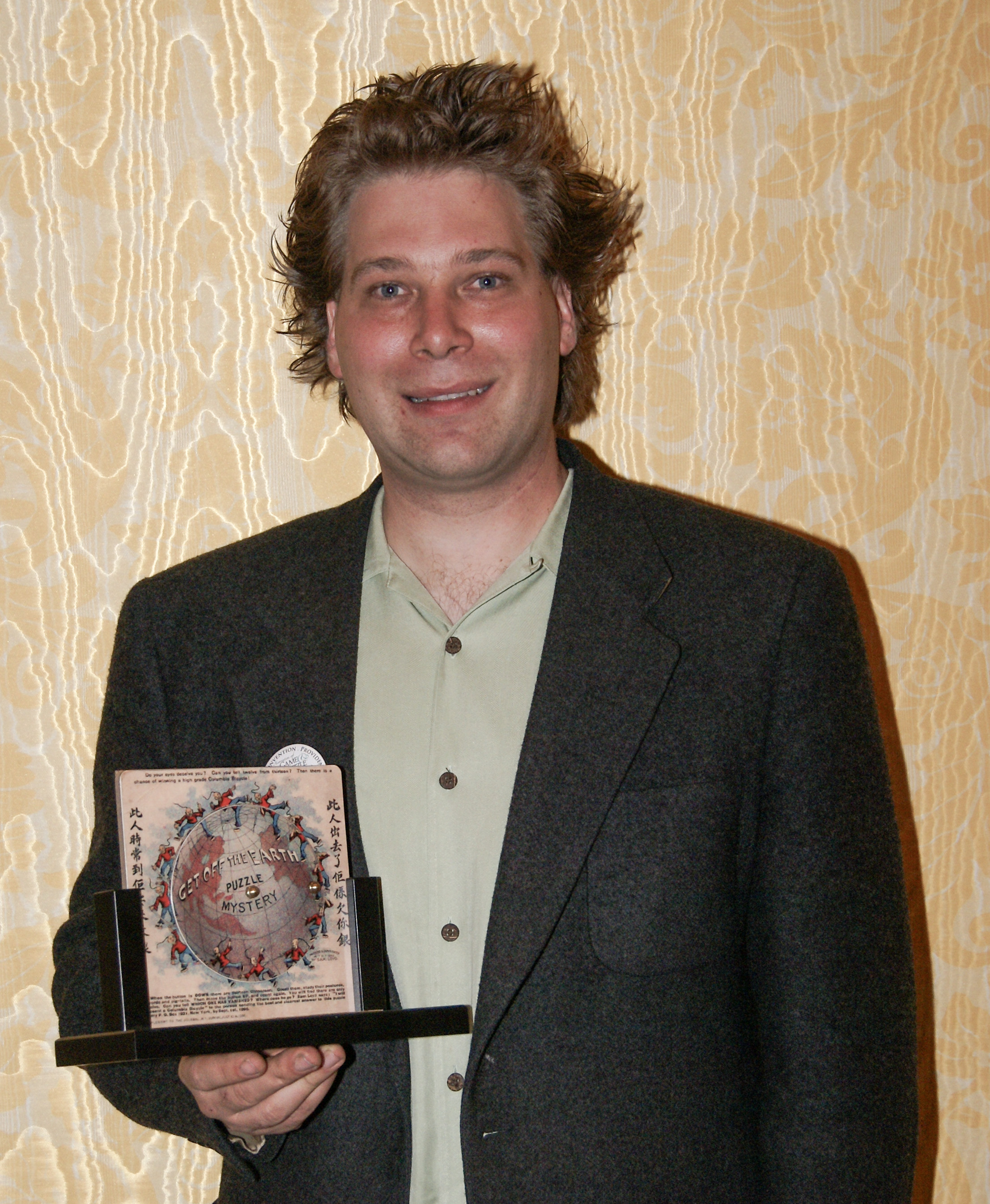 2009 • Kagen Schaefer (his name at the time of award; he is now known as Kagen Sound), a renowned mechanical puzzle designer and woodcraft craftsman specializing in beautifully hand-crafted secret opening boxes